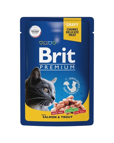 Нежные кусочки лосося и форели в ароматном соусе - идеальное сочетание для полноценного и сбалансированного рациона. Паучи Brit Premium однозначно заинтересуют вашу кошку и станут для нее любимым блюдом. Влажный корм содержит все необходимые витамины и минералы, которые необходимы питомцу. Таурин в составе – важный ингредиенты для поддержания остроты зрения и здоровья сердечно-сосудистой системы кошек.