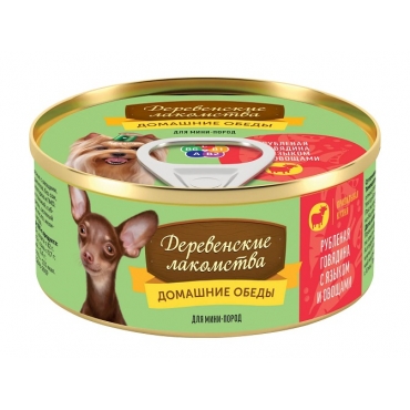 Деревенские лакомства Консервы для Собак Мини пород "Рубленая Говядина с Языком и Овощами" 100гр*5шт (62135)