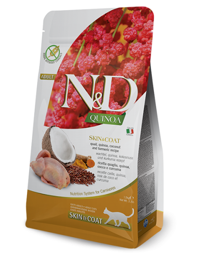 Farmina N&D Cat Quinoa Skin&coat Quail Беззерновой Корм для Здоровья Кожи и Шерсти Кошек Перепел с Киноа