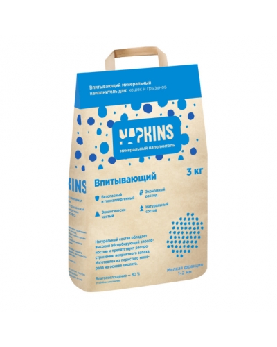 Впитывающий наполнитель Napkins изготовлен из пористого минерала на основе цеолита.