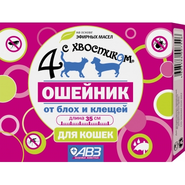 Отзывы о товаре АВЗ "4 с хвостиком" Ошейник Репеллентный для Кошек 35см (54292)