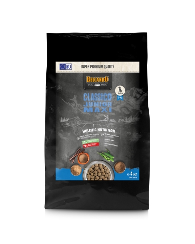 Сухой суперпремиум корм для выращивания молодых собак средних и крупных пород, начиная с 4-х месячного возраста. Корм произведён в Европе по немецкой рецептуре от компании Бевиталь. Корм хорошо переваривается благодаря большому количеству мяса птицы и риса. А пропорция белков, жиров и кальция в корме адаптированы к медленному росту собак крупных пород. Источники белка: животный белок – 70%, растительный белок – 30%. Размер гранул – 20 мм. Корм содержит цареградский стручок с дубильными и жизненно важными веществами для хорошего пищеварения.