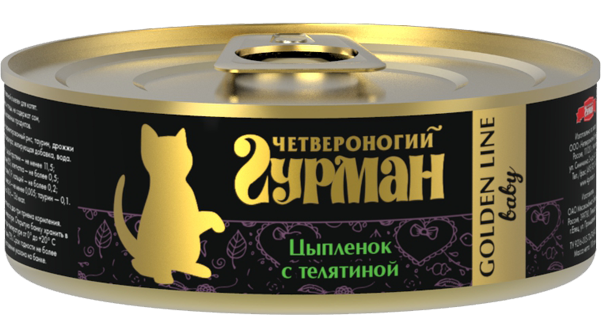 «Четвероногий гурман» Golden line - это корм суперпремиум класса, приготовленный из одного вида мяса без добавления субпродуктов и растительных компонентов.