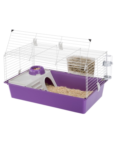 Cavie 80 - клетка для морских свинок с недавно разработанными креплениями для закрывания дверки, обеспечивающими большую безопасность вашего питомца. Изготовлена из окрашенной стальной проволоки в комплекте с большим пластиковым поддоном. В комплекте вы найдете: удобный маленький домик для морских свинок, поилку и пластиковую кормушку.