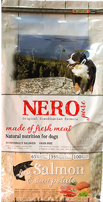 ⸙ 65% питательного белка из мяса лосося.⸙ 35% питательного белка из овощей и фруктов.⸙ 100% беззерновой и не содержит глютен.⸙ За счет полностью натурального состава подходит собакам склонным к аллергии.⸙ Произведен в Нидерландах из свежих скандинавских ингредиентов.⸙ Содержит один вид белка животного происхождения (лосось).