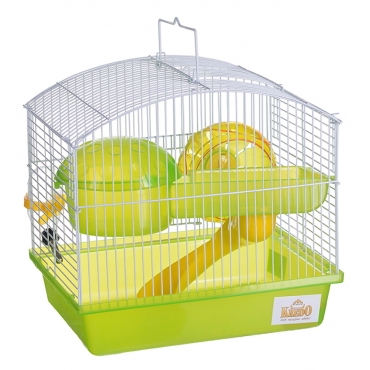 Клетка для грызунов, домик, кормушка, автопоилка, винтовой спуск, беговое колесо, цвета в ассортименте.