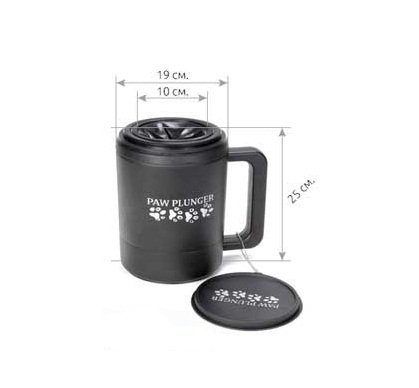 Внутри Paw Plunger - ёршики, у горлышка - резиновые лепестки. Ёршики отмывают грязь, а лепестки плотно окружают лапу, не давая выплескиваться воде. Всего несколько движений емкости, и вся грязь смыта!