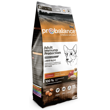 Корм ProBalance "Immuno Adult Beef" предназначен для ежедневного кормления взрослых собак всех пород. L-лизин является необходимым строительным блоком для всех белков в организме, играет важную роль в абсорбции кальция , а также производстве организмом гормонов, ферментов и антител.