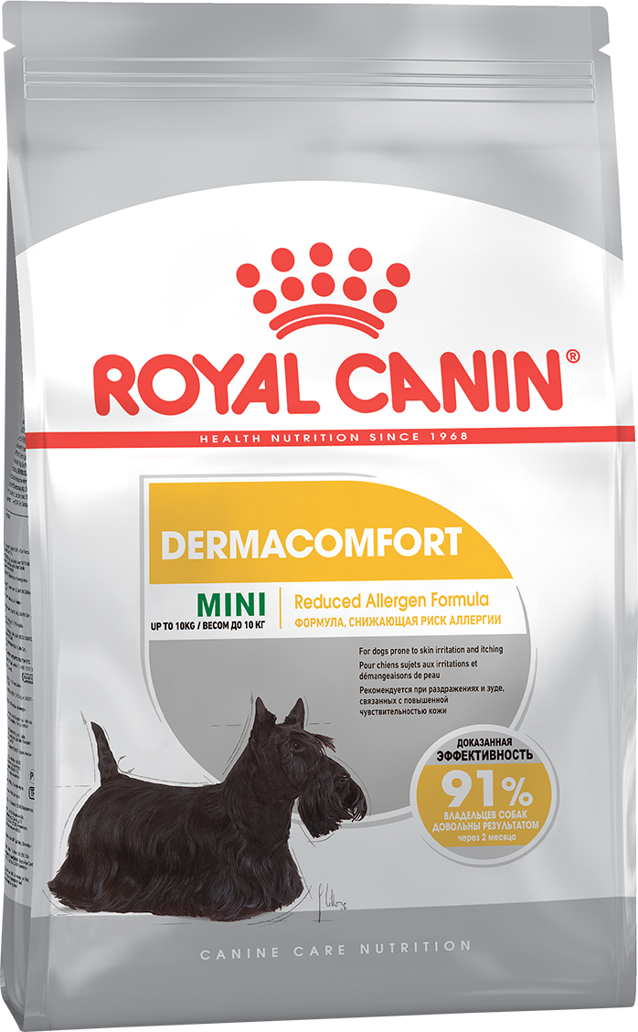 Применение Dermacomfort способствует здоровью кожи, поскольку в его составе ограничено количество источников белка, которые считаются потенциальными аллергенами у собак. Используемые белки были отобраны по признаку высокой степени их усвояемости. Dermacomfort помогает уменьшить раздражение кожи и зуд.