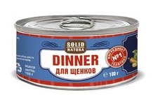 Solid Natura Dinner с телятиной - консервированное влажное питание класса премиум для щенков. Нежная консистенция в виде фарша, отличная поедаемость, в составе отсутствуют зерновые культуры.