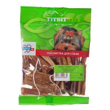 Описание: Высушенные порезанные на отрезки 3-4 см говяжьи кишки. Легкоусвояемое лакомство, богатое витаминами и ферментами микрофлоры кишечника крупного рогатого скота. Имеют большую энергетическую ценность из-за повышенного содержания жира. Богаты перевариваемыми протеинами, которые содержат все незаменимые аминокислоты и потому усваиваются на 90-95%. Содержат минеральные вещества в большем количестве, чем все остальные продукты (в том числе кальций, магний и фосфор), жирорастворимые витамины, а также водорастворимые витамины.