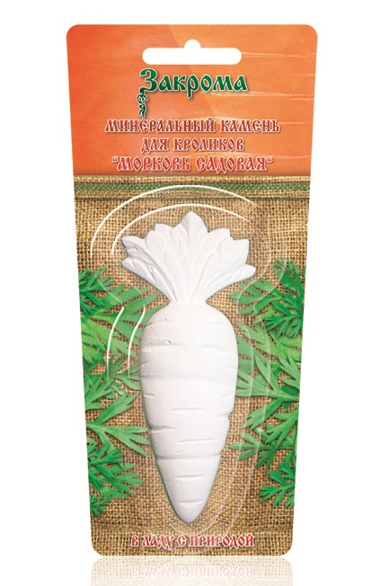 Зубы кролика растут на протяжении всей жизни и требуют постоянного стачивания. В состав минерального камня «Морковь» входят только органические компоненты, содержащие кальций, магний, фосфор, натрий и калий.