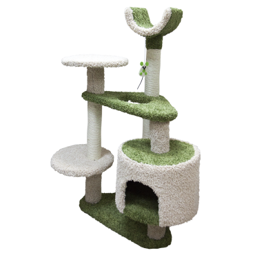 Такой игровой комплекс обязательно понравится как одной кошке, так и нескольким кошкам сразу, так как места хватит всем. Игровой комплекс включает в себя: домик, несколько игровых площадок,лежанки, лазилки. А по столбикам-когтеточкам, из которого составлен комплекс кошкам обязательно понравится лазать!