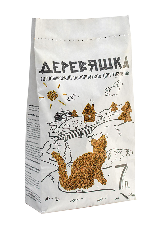 Деревяшка наполнитель изготовлен из тщательно отобранных опилок деревьев хвойных пород, он обладает высокими показателями влагопоглощения и поглощения запаха, имеет ровный золотистый оттенок и легкий аромат хвои.